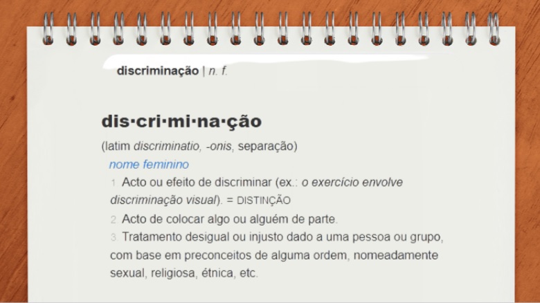Por isso, discriminação não se prende com este ou com aquele grupo, mas com a cobardia, com a falta de caráter, com a ausência de respeito pelo outro, que, mais do que seria desejável, caracterizam muitas pessoas.